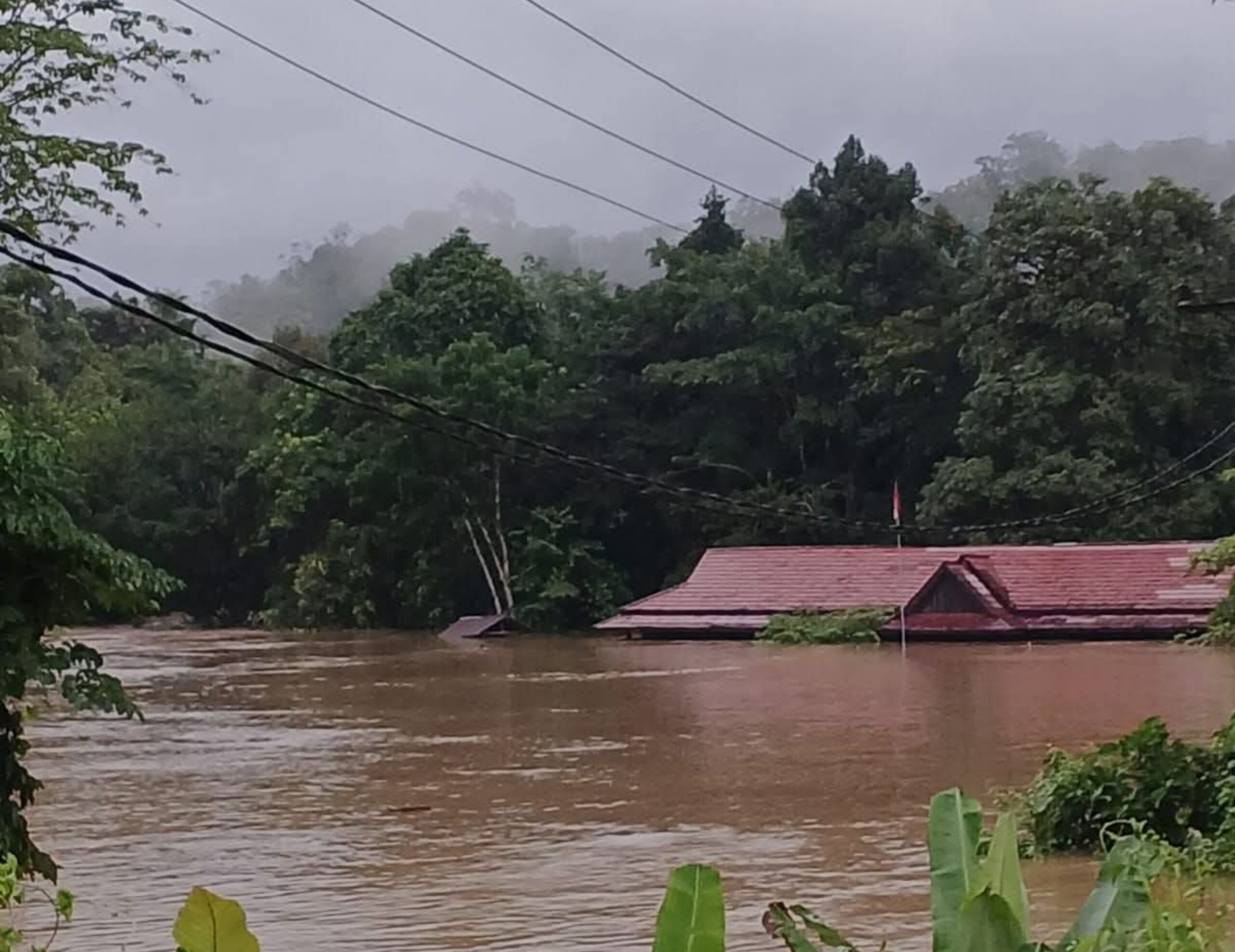 Dalam sejumlah dokumentasi yang beredar, air tampak menutupi hampir seluruh bagian bangunan sekolah, menyisakan bagian atap yang masih terlihat di permukaan. Kondisi ini menunjukkan ketinggian air yang cukup signifikan dan berpotensi mengganggu aktivitas belajar mengajar.