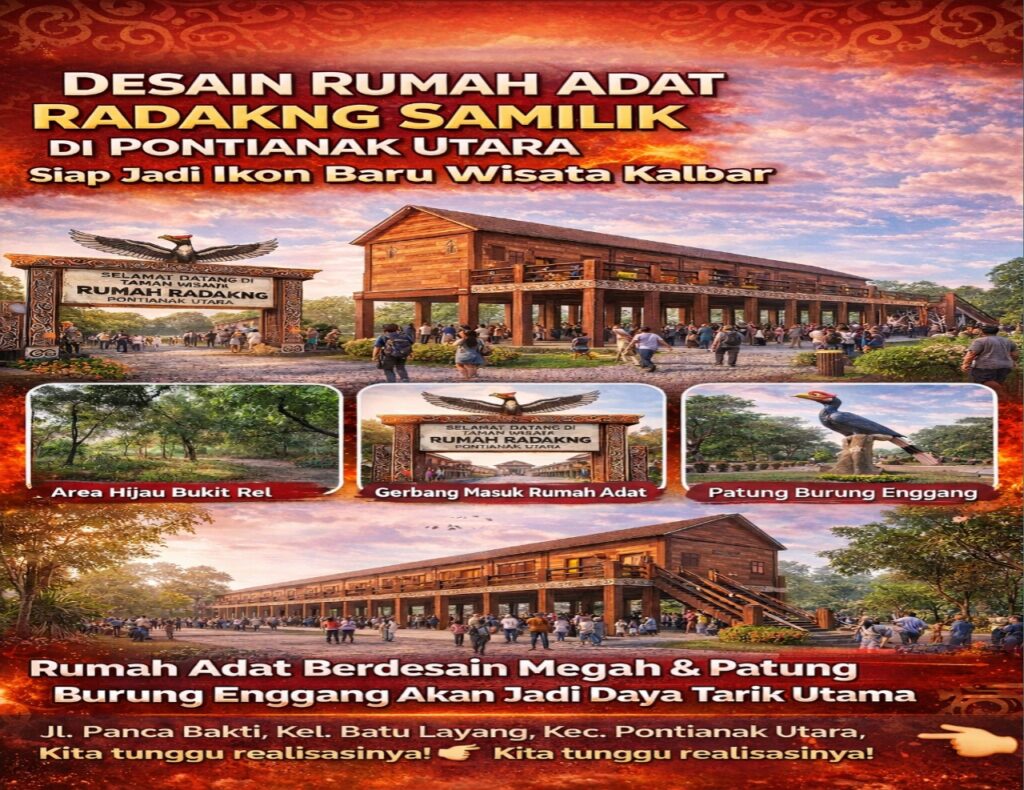 Pontianak – Sebuah gebrakan baru dalam pelestarian budaya lokal kembali hadir di wilayah Pontianak Utara. Rencana pembangunan Rumah Adat Radakng Samilik kini resmi diperkenalkan ke publik dengan desain yang memadukan nilai tradisional dan sentuhan modern.