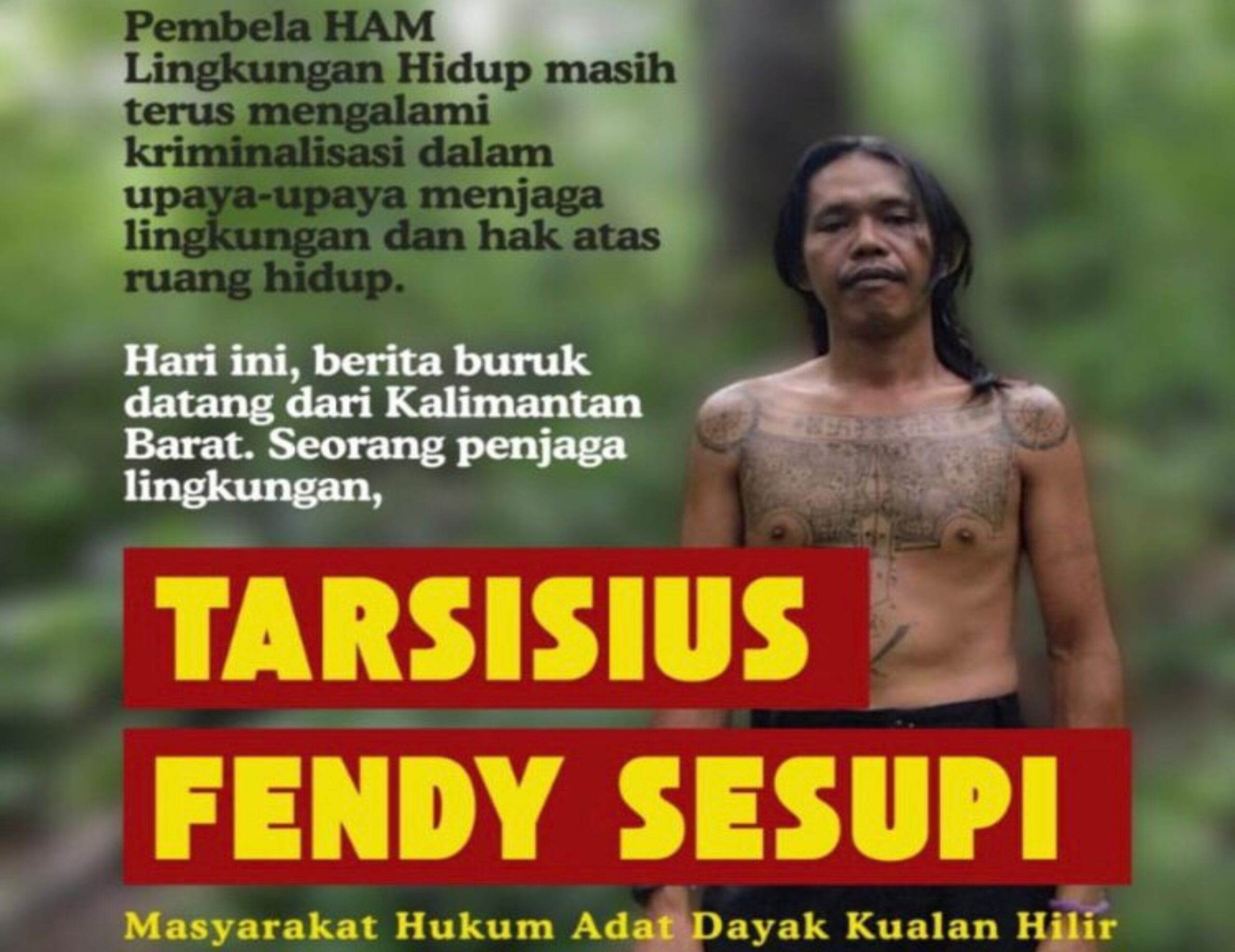 Ketapang, Kalimantan Barat — Seorang warga Masyarakat Hukum Adat Dayak Kualan Hilir, Tarsisius Fendy Sesupi, dipanggil sebagai tersangka oleh Kepolisian Resor Ketapang, Kalimantan Barat. Pemanggilan tersebut dilakukan berdasarkan Surat Panggilan Tersangka Nomor: S.Pgl/592/XII/RES.1.24/2025/Reskrim-II, bertanggal 9 Desember 2025.